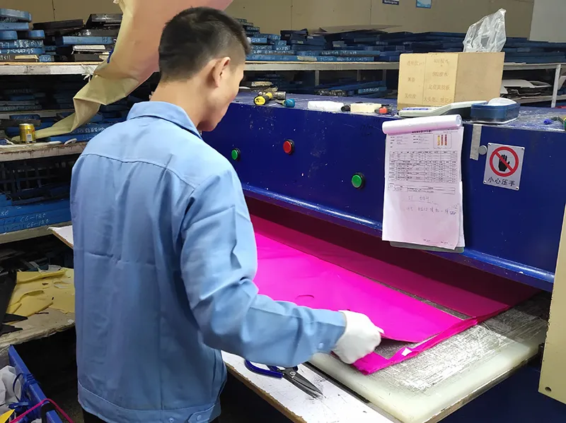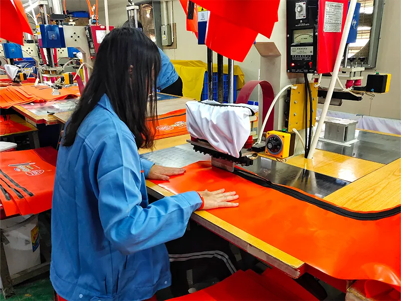 Naše továrny jsou vybaveny špičkovým automatizovaným výrobním zařízením, včetně inteligentního řezání, přesného svařování a automatizovaných montážních linek. Toto pokročilé nastavení zvýšilo naši celkovou efektivitu výroby o více než 30 %. Umožňuje nám konzistentně zvládat náročné techniky, jako je vysokofrekvenční tepelné těsnění.